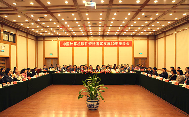 2011年10月28日,“中國計算機技術與軟件專業技術資格(水平)考試發展20年座談會”在北京舉行。人力資源和社會保障部專業技術人員管理司副司長吳劍英、工業和信息化部人事教育司副巡視員劉素文等相關領導出席會議并致辭,原人力資源和社會保障部專業技術人員管理司司長劉寶英、部分離退休老干部和專家也應邀出席座談會。參加會議的還有來自全國各省市計算機軟件資格考試管理機構的負責人和部分考務工作人員,座談會由工業和信息化部教育與考試中心主任徐玉彬主持。