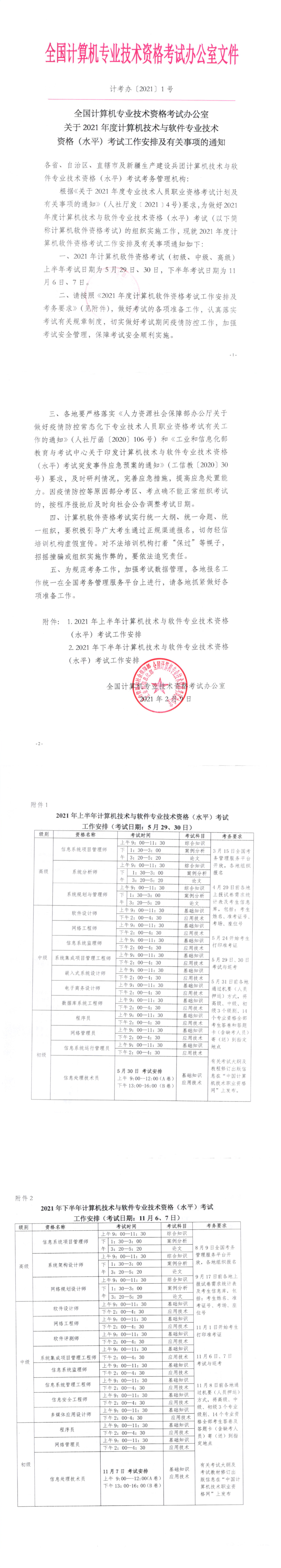 2021年計算機技術與軟件專業技術資格(水平)考試安排有關事項的通知