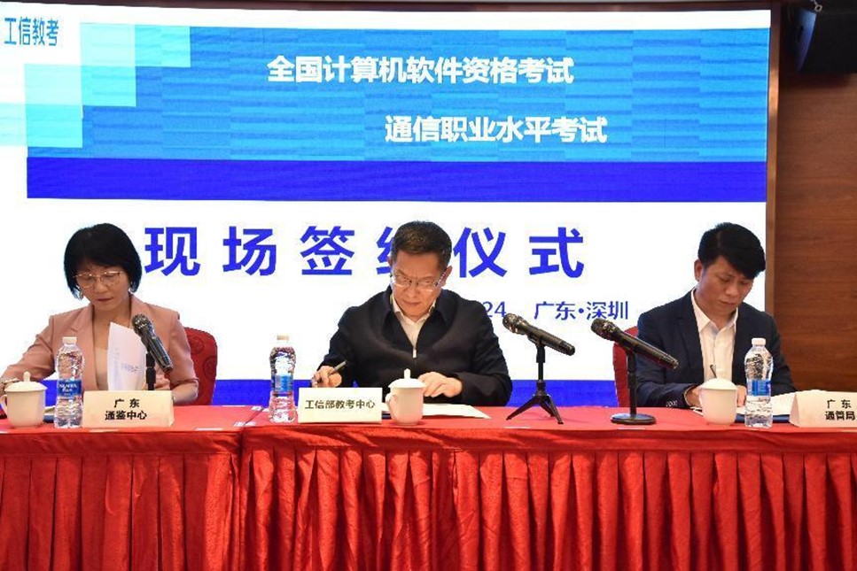 會(huì)議期間,郝志強(qiáng)與部分計(jì)算機(jī)軟件資格考試、通信職業(yè)水平考試主管部門(mén)及其考試管理機(jī)構(gòu)共同簽訂三方“安全責(zé)任書(shū)”。
